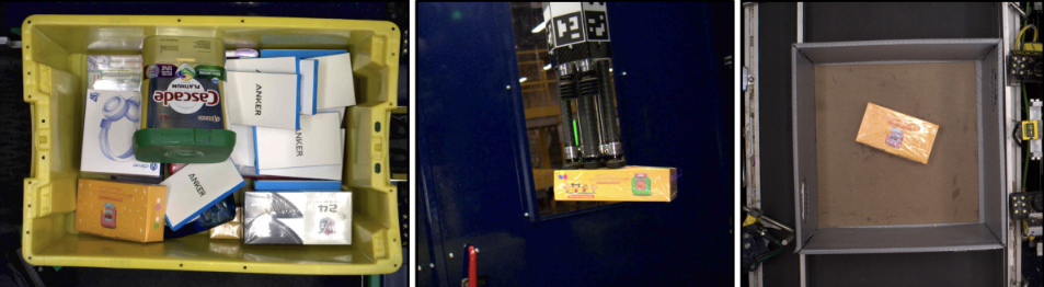 從左到右:來自亞馬遜 ARMBench 數(shù)據(jù)集的揀選圖像、傳輸圖像和放置圖像。|來源:亞馬遜