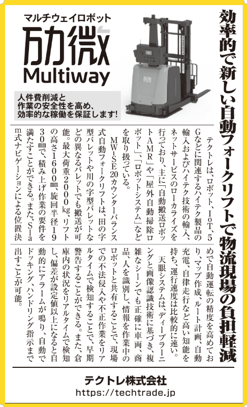 4月12日至4月14日,日本西部規(guī)模最大的物流展——關(guān)西物流展于大阪盛大啟幕,勱微機器人攜前沿移動機器人產(chǎn)品和創(chuàng)新行業(yè)解決方案亮相展會(6號館A6-02)。