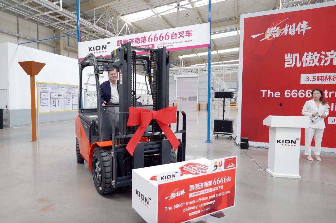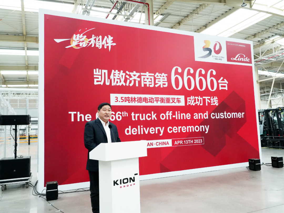 2023年4月13日,一路相伴暨凱傲濟(jì)南工廠第6666臺(tái)林德3.5噸電動(dòng)平衡重叉車下線儀式在濟(jì)南萊蕪智慧工廠盛大舉行。凱傲集團(tuán)首席執(zhí)行官Rob Smith、凱傲集團(tuán)董事兼凱傲亞太及美洲區(qū)總裁郭進(jìn)鵬、凱傲集團(tuán)執(zhí)行董事會(huì)成員以及凱傲中國(guó)管理層、海爾集團(tuán)客戶方代表、媒體嘉賓等出席本次活動(dòng),共同見(jiàn)證這歷史性時(shí)刻?!?/p>