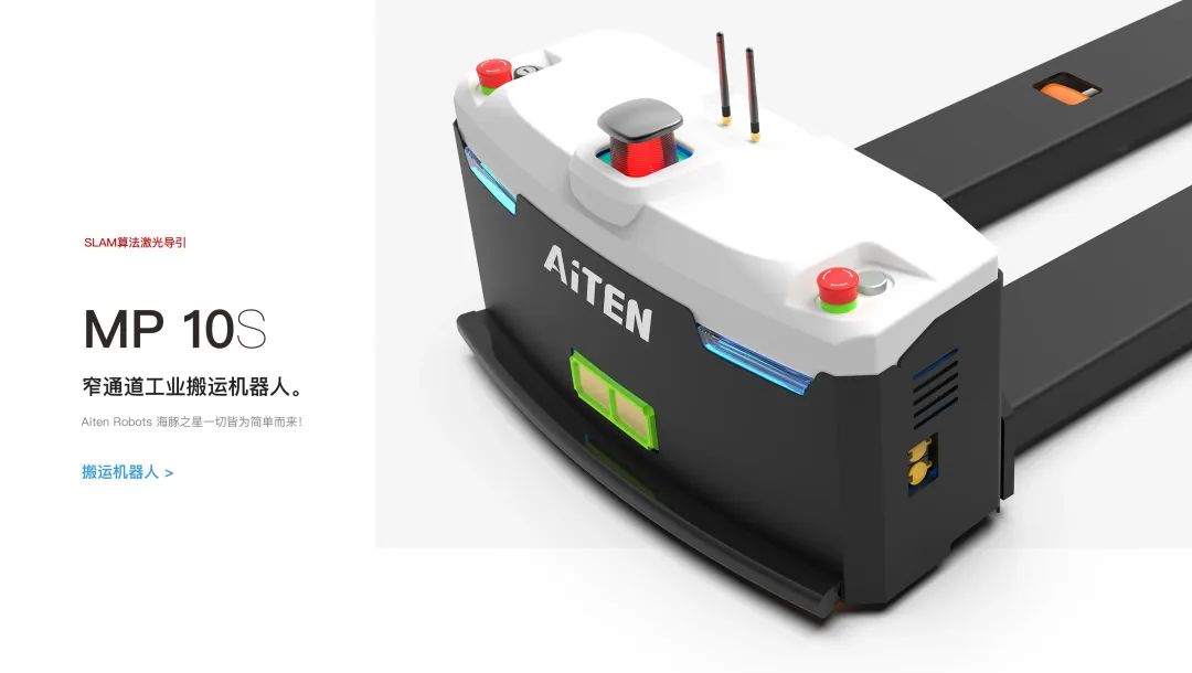 本次展會(huì)海豚之星還帶來(lái)了旗艦產(chǎn)品:小海豚MP10S窄通道搬運(yùn)機(jī)器人。得益于MP10S僅需1800mm的通道寬度,因此MP10S具有良好的環(huán)境適應(yīng)性??蓱?yīng)用于不同類型的物流和制造行業(yè)、3C電子、包括醫(yī)療保健、食品和飲料、汽車制造等。
