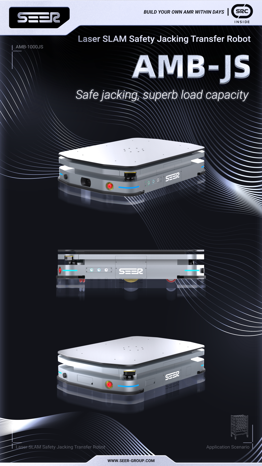 AMB-1000JS 啟用 SEER 全新的工業(yè)設(shè)計,外觀全新升級,身材更加小巧,負(fù)載更高可達(dá) 1T;支持單邊 7cm+ 距離廣域全能識別料架,自動糾偏后精準(zhǔn)鉆入料架,提高載貨成功率;支持 40A 快充,充電 1 小時,滿載續(xù)航 7 小時,提升作業(yè)時長和效率。