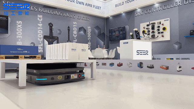 2023 新品 AMB-1000JS 是采用激光 SLAM 的潛伏頂升安全型搬運(yùn)機(jī)器人,首次亮相歐洲市場。