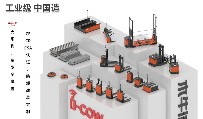 木牛流馬擁有7大系列全品類移動機器人產(chǎn)品,覆蓋堆垛系列、搬運系列、前移系列、背負(fù)系列、窄巷道系列、全向系列、牽引系列,產(chǎn)品擁有CECRCSA等多國和地區(qū)的產(chǎn)品準(zhǔn)入認(rèn)證,可進行特殊環(huán)境的Ex防爆改裝。