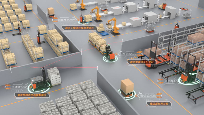 產(chǎn)線邊多設(shè)備大規(guī)?;旌险{(diào)度無人化配送盒子:融合5G等技術(shù)的AGV、AMR產(chǎn)品的多種移動機器人集中部署,鏈接堆垛機、輸送線、包裝線,電梯和升降機等一體化場景。