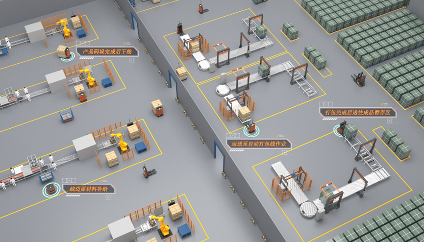 產(chǎn)線末端的成品碼垛、包裝、裝車無人一體化盒子:針對產(chǎn)線末端,提煉出包括AGV/AMR與碼垛機,包裝線,無人化裝車等一體化方案,標(biāo)準(zhǔn)的配置,灌裝整個系統(tǒng),形成標(biāo)準(zhǔn)化方案。