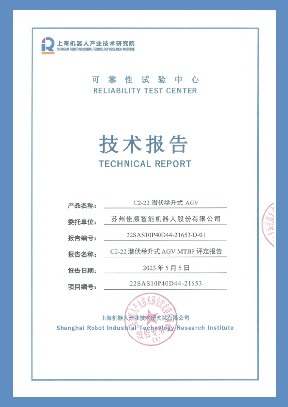 近日,佳順智能移動(dòng)機(jī)器人標(biāo)準(zhǔn)產(chǎn)品之一的潛伏舉升移動(dòng)機(jī)器人獲得了MTBF(平均無(wú)故障時(shí)間)2000小時(shí)(按照24小時(shí)不間斷運(yùn)行為83天)認(rèn)證。這是對(duì)我們產(chǎn)品品質(zhì)和可靠性的巨大認(rèn)可,也是我們不斷追求卓越的成果。
