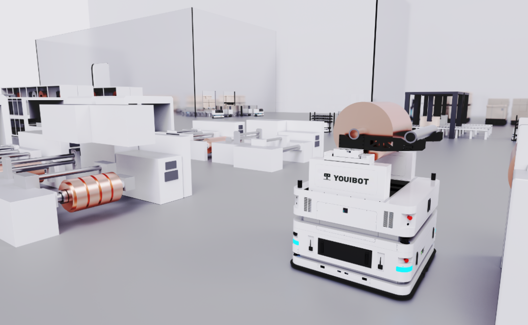 Z公司:優(yōu)艾智合利用激光SLAM與二維碼融合導(dǎo)航技術(shù),幫助其實現(xiàn)物料在人工備料區(qū)至基膜涂膜加工區(qū)及成品分切暫存區(qū)的轉(zhuǎn)運。