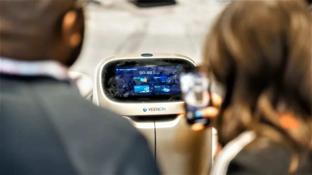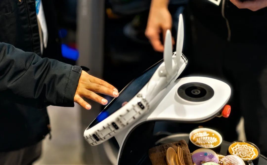 參展人員體驗擎朗送餐機器人T5