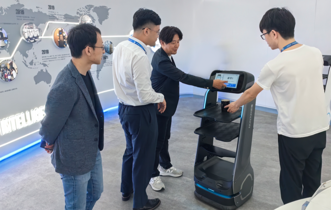 松林大悟先生與白賢俊先生參觀擎朗智能展廳擎朗智能日本銷售負責人王一雄表示:“我們提供了從適合配餐的開放式送餐機器人到適合酒店及室內(nèi)安全配送的封閉式配送機器人等眾多產(chǎn)品。擎朗智能可以提供的服務機器人數(shù)量是強有力的合作基礎,通過與當?shù)睾献骰锇榈墓餐?,在擁有先進技術(shù)的同時,也將穩(wěn)定日本市場的勞動力以及降低運營成本。”