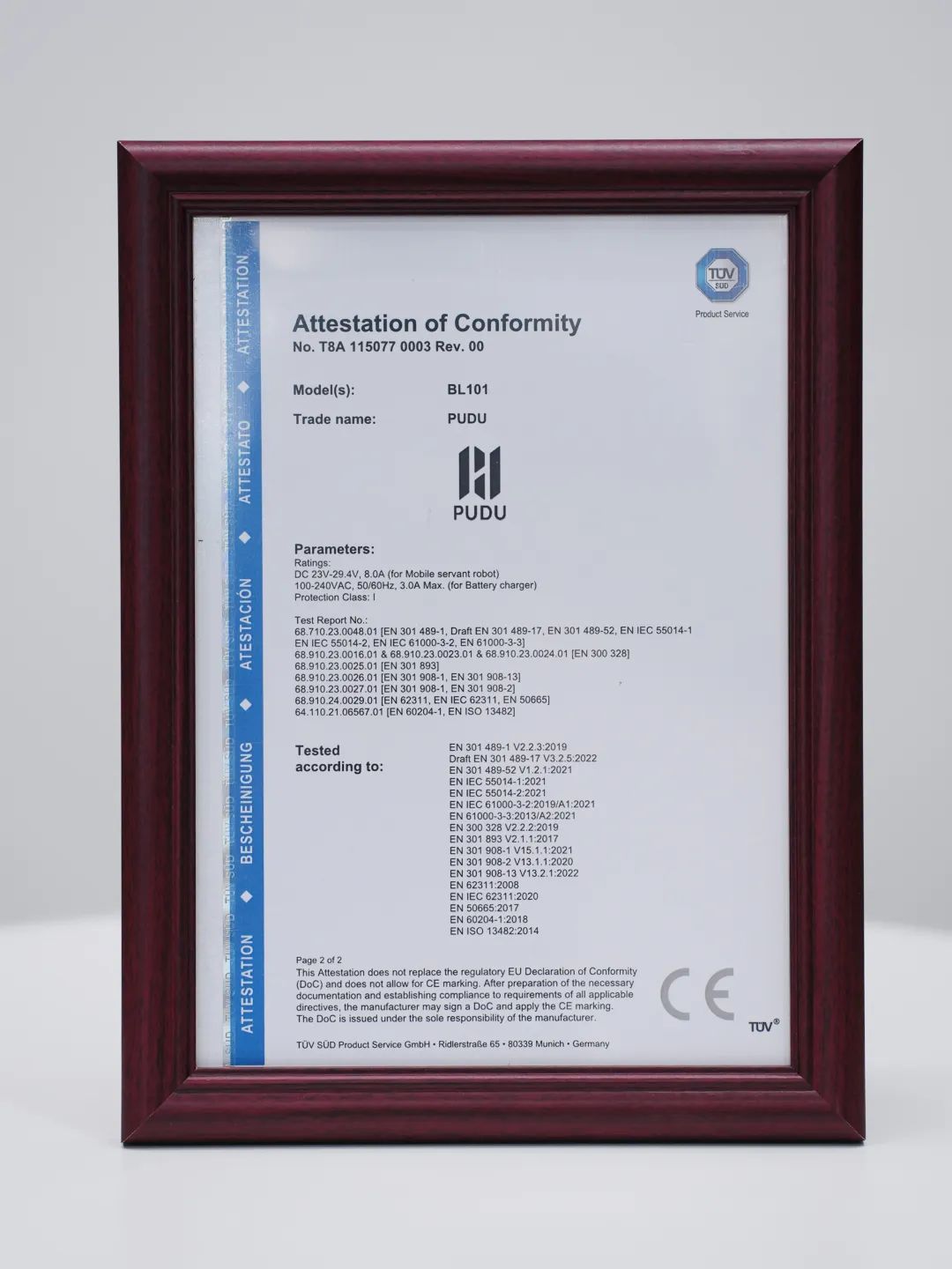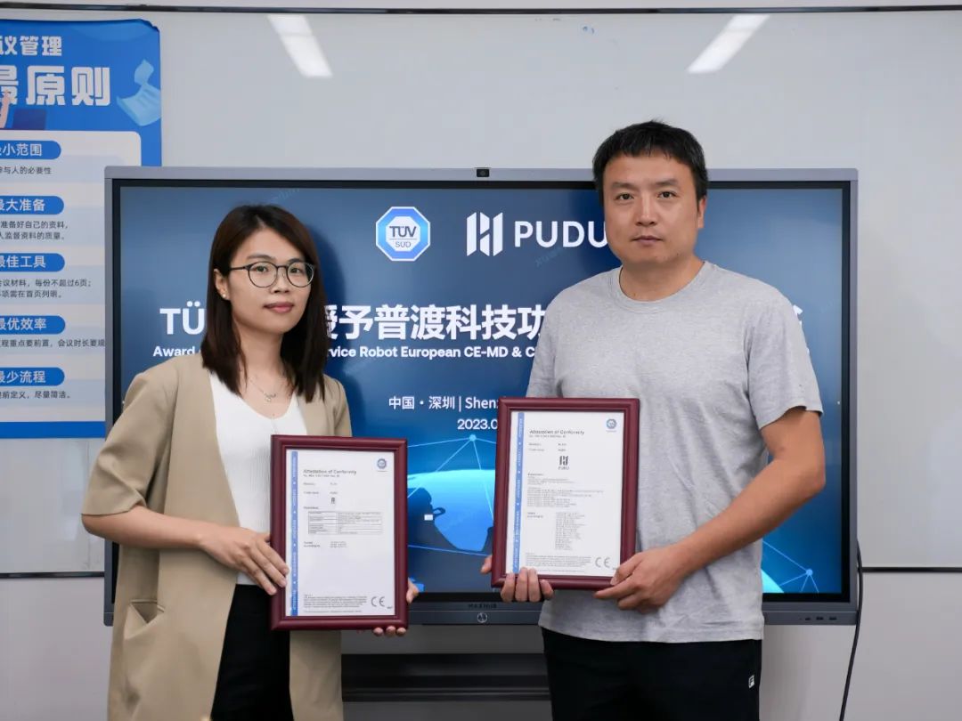 TüV南德集團是全球知名的第三方檢測、認證、監(jiān)管機構,具有公信力、專業(yè)性和權威性。頒證儀式上,普渡科技SVP蔡陽春先生和TüV南德南中國區(qū)電子電氣部銷售經理湯翠艷女士出席了本次活動。