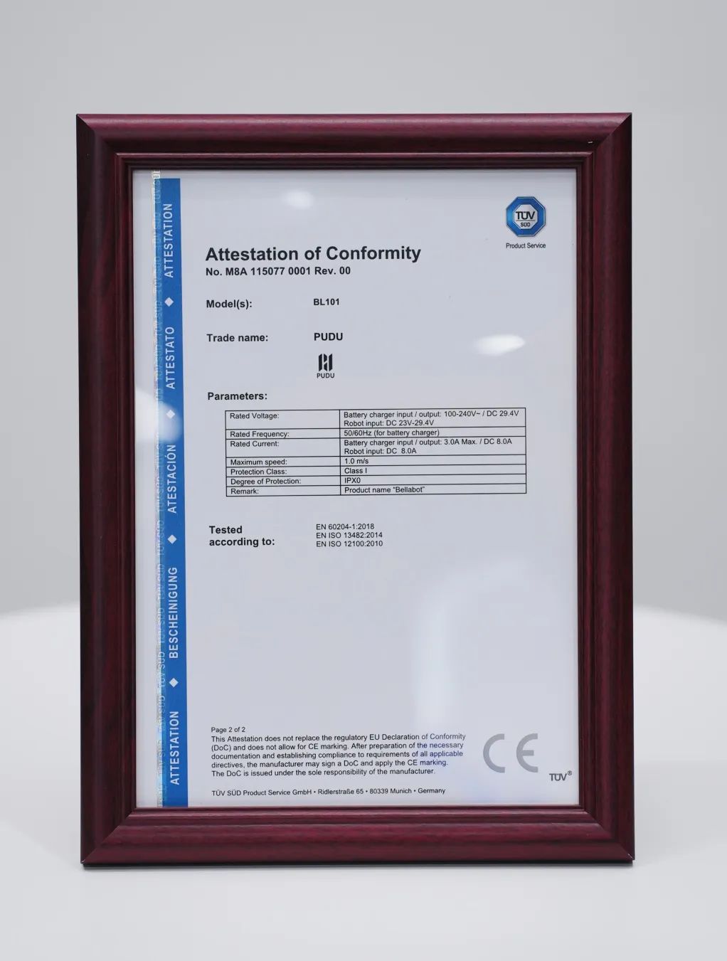 6月2日,TüV南德意志集團(以下簡稱“TüV南德”)為普渡機器人“貝拉” 頒發(fā)了歐盟機器指令CE-MD和歐盟無線指令CE-RED證書。該系列證書的獲得,表明普渡機器人符合國際和歐盟ISO 13482、 ISO 13849以及無線安全方面的嚴格標準,標志著“貝拉”可憑借更高的價值認可進入歐洲市場。