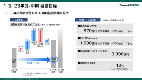 2023-2024 財(cái)年的管理目標(biāo) 資料來源:松下能源