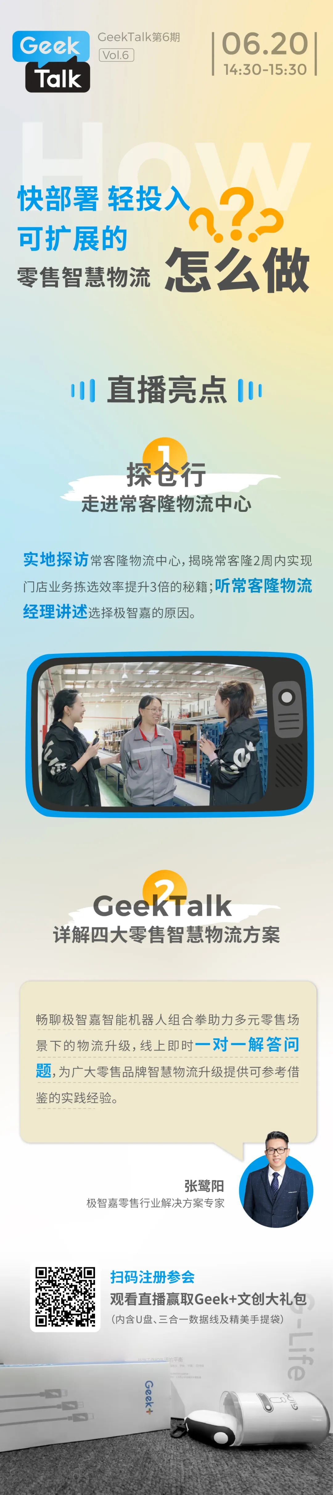 6月20日(周二)14:30,極智嘉將圍繞“快部署、輕投入、可擴展的零售智慧物流,怎么做?”的話題,與大家共探零售企業(yè)智慧物流轉(zhuǎn)型之道。