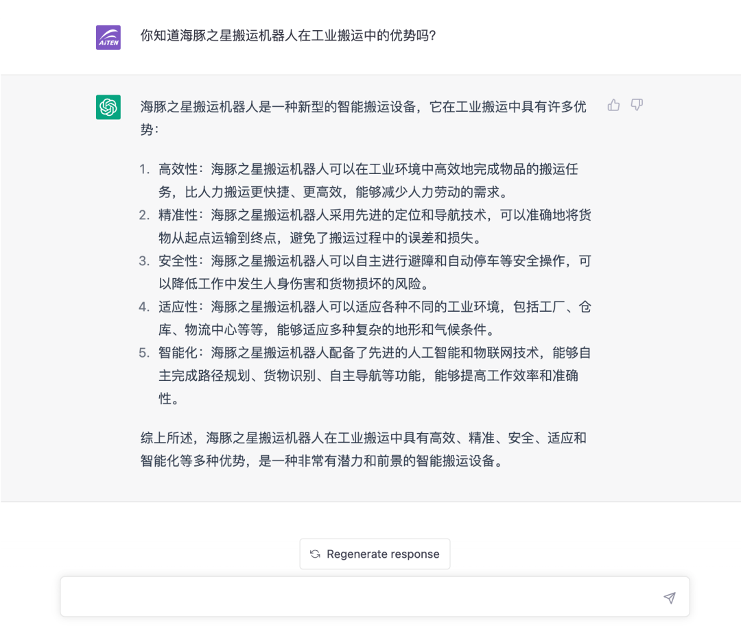 面對這一智能搬運(yùn)機(jī)器人,擁有強(qiáng)大的信息整合能力、自然語言處理能力的chartGPT又有何評價(jià)呢?
