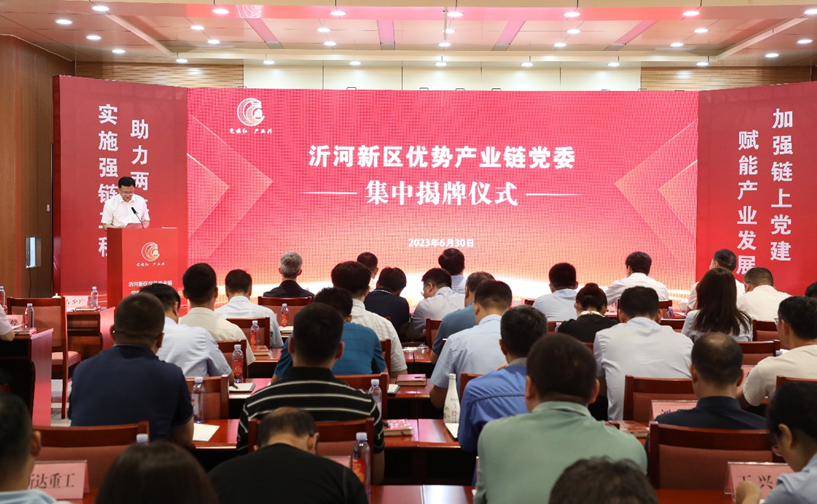 6月30日,沂河新區(qū)優(yōu)勢(shì)產(chǎn)業(yè)鏈黨委集中揭牌儀式在臨工舉行。臨沂市委常委、組織部部長(zhǎng)、統(tǒng)戰(zhàn)部部長(zhǎng)趙紀(jì)鋼,沂河新區(qū)黨工委副書記、臨沂經(jīng)濟(jì)技術(shù)開發(fā)區(qū)管委會(huì)主任陳一兵,沂河新區(qū)黨工委副書記、臨沂經(jīng)濟(jì)技術(shù)開發(fā)區(qū)服務(wù)中心主任、黨委書記張偉峰,市委兩新組織工委專職副書記吉祥出席儀式。臨沂經(jīng)濟(jì)技術(shù)開發(fā)區(qū)黨工委副書記石少?gòu)V主持儀式。