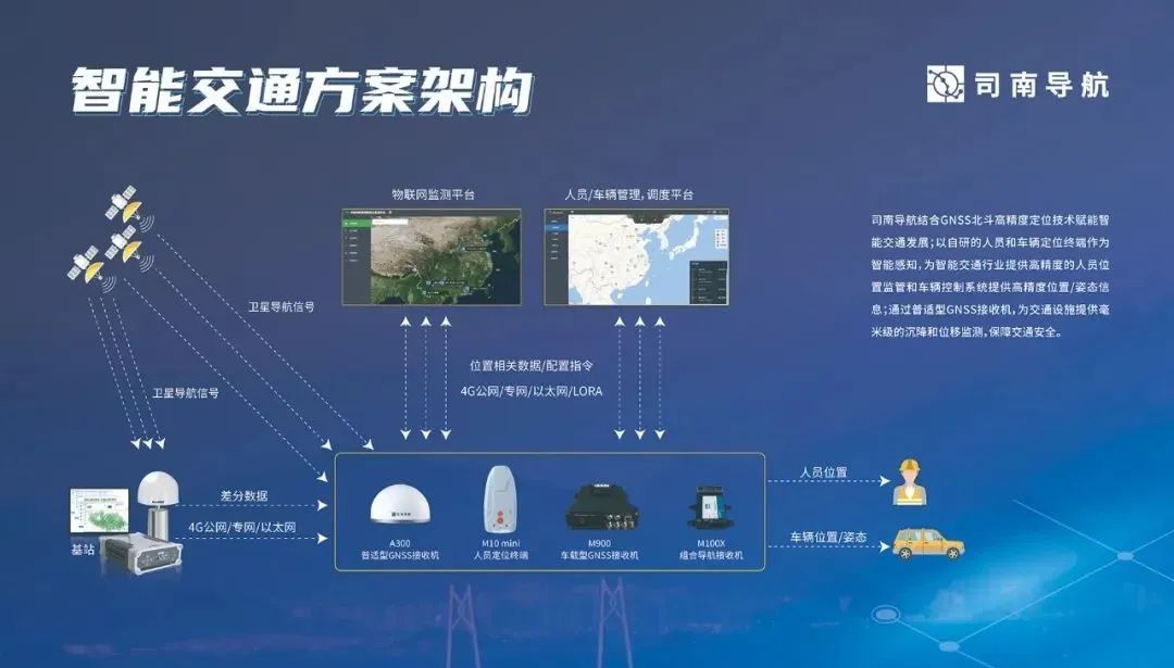 司南導(dǎo)航結(jié)合GNSS北斗高精度定位技術(shù)賦能智能交通發(fā)展;以自研的人員和車輛定位終端作為智能感知,為智能交通行業(yè)提供高精度的人員位置監(jiān)管和車輛控制系統(tǒng)提供高精度位置/姿態(tài)信息;通過普適型GNSS接收機,為交通設(shè)施提供毫米級的沉降和位移監(jiān)測,保障交通安全。