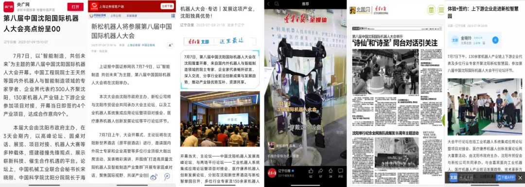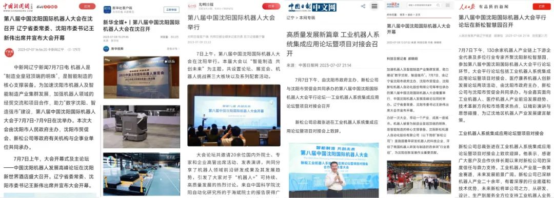 7月7日-9日,以“智能制造 共創(chuàng)未來(lái)”為主題的第八屆中國(guó)沈陽(yáng)國(guó)際機(jī)器人大會(huì)盛大召開。眾多知名專家學(xué)者、行業(yè)企業(yè)負(fù)責(zé)人、技術(shù)大咖等齊聚沈陽(yáng),在大會(huì)主論壇及平行論壇環(huán)節(jié),院士、專家“把脈”獻(xiàn)策,助力沈陽(yáng)機(jī)器人產(chǎn)業(yè)發(fā)展;更有新松系列創(chuàng)新機(jī)器人產(chǎn)品亮相大會(huì)展覽會(huì)……這場(chǎng)由沈陽(yáng)市政府主辦,新松公司與沈陽(yáng)市貿(mào)促會(huì)共同承辦的專業(yè)、精彩的機(jī)器人盛會(huì)吸引人民日?qǐng)?bào)、新華社、光明日?qǐng)?bào)、中國(guó)日?qǐng)?bào)、科技日?qǐng)?bào)、中國(guó)新聞社、遼寧日?qǐng)?bào)、遼寧電視臺(tái)、沈陽(yáng)日?qǐng)?bào)、沈陽(yáng)電視臺(tái)等20余家國(guó)家級(jí)和地方媒體蒞臨,機(jī)器人技術(shù)與應(yīng)用開通直播平臺(tái),中國(guó)機(jī)電工業(yè)、物流技術(shù)與應(yīng)用、新戰(zhàn)略媒體等眾多行業(yè)媒體也進(jìn)行了深入報(bào)道,引發(fā)百余篇關(guān)注報(bào)道!