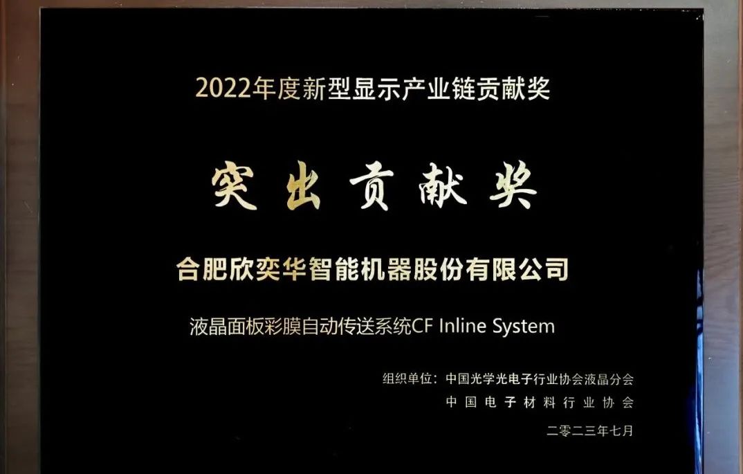 合肥欣奕華憑借“液晶面板彩膜自動(dòng)傳送系統(tǒng)”項(xiàng)目,獲得2022年度中國新型顯示產(chǎn)業(yè)鏈發(fā)展貢獻(xiàn)獎(jiǎng)—突出貢獻(xiàn)獎(jiǎng)。合肥欣奕華成立至今已四次摘得該顯示產(chǎn)業(yè)最頂尖的行業(yè)殊榮,充分闡釋了多年來合肥欣奕華對(duì)國內(nèi)顯示產(chǎn)業(yè)鏈快速發(fā)展所作出的突出貢獻(xiàn)。