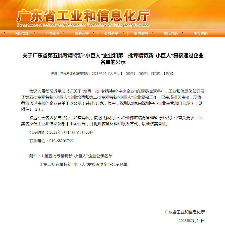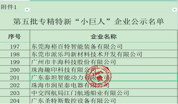 2023年7月14日,廣東省工業(yè)和信息化廳發(fā)布了《關(guān)于廣東省第五批專精特新“小巨人”企業(yè)和第二批專精特新“小巨人”復(fù)核通過企業(yè)名單的公示》,廣東泰坦智能動力有限公司通過國家級專精特新企業(yè)審核,榮獲“小巨人”稱號。