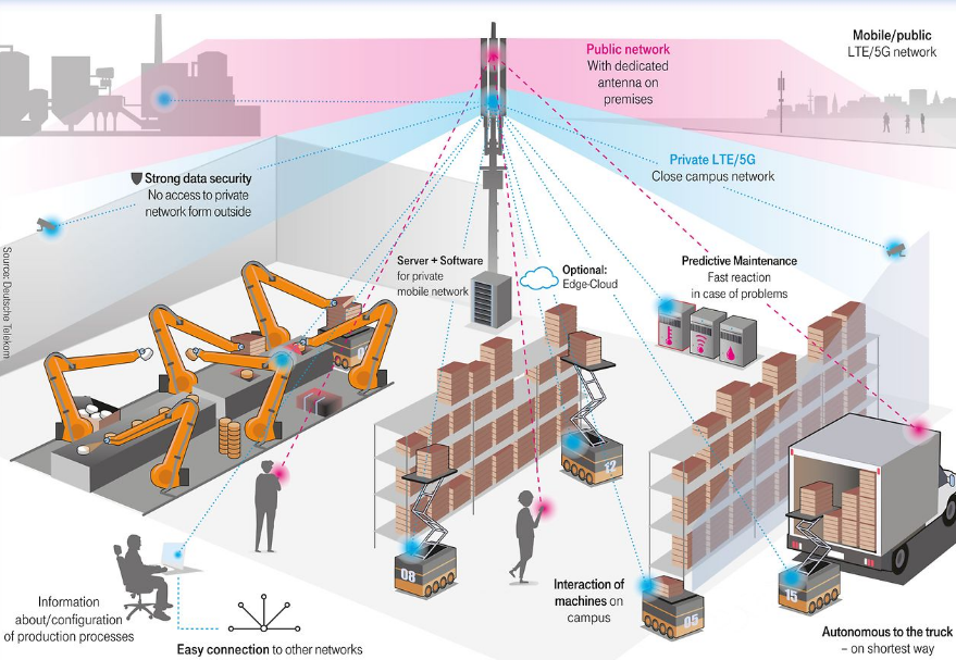 其中一些 IoT4I 用例是由公共蜂窩基礎設施支持的;許多其他公司正在為新的私人 LTE 和 5G 設施提供資金。例如,空中客車公司正在積極推動私有 5G 基礎設施的建設;他們利用私人蜂窩網(wǎng)絡可靠且可預測地連接各種手機、耳機、平板電腦和機器人。其初始用例列表如下:移動設備連接到本地制造執(zhí)行系統(tǒng)(MES);用于遠程協(xié)助和檢查的增強和虛擬現(xiàn)實(AR 和 VR)應用;以及機器人、車輛(AGV)和運輸飛機零件的“移動平臺”。