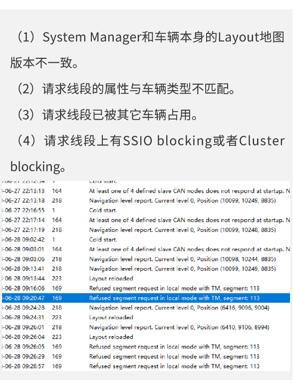 攻略11 當(dāng)車輛在主控模式下運(yùn)行時(shí),交管系統(tǒng)拒絕了車輛的行駛線段請(qǐng)求,分析原因可能是?