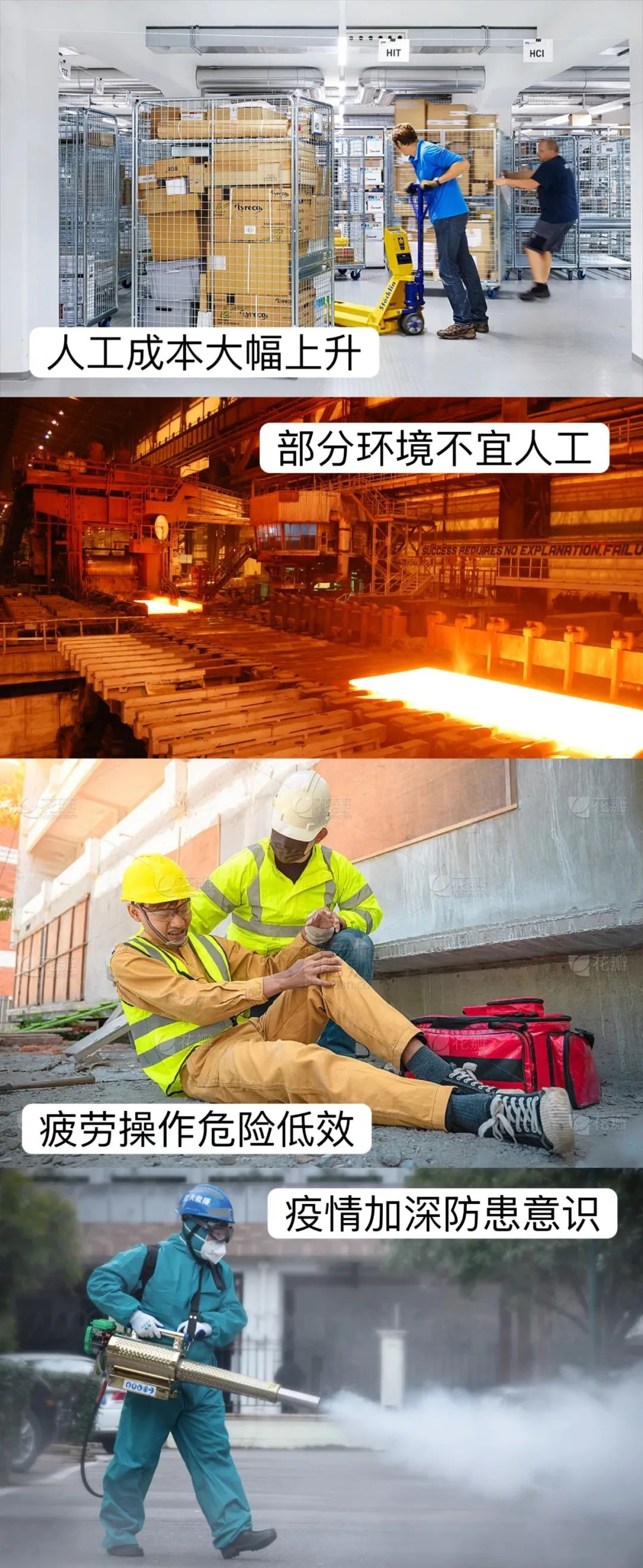 在傳統(tǒng)工廠物流中,叉車為物料的搬運(yùn)與流轉(zhuǎn)做出了劃時(shí)代的貢獻(xiàn),但是隨著企業(yè)面臨新舊挑戰(zhàn)的雙重考驗(yàn),人+傳統(tǒng)叉車已不在是勞動密集型制造業(yè)企業(yè)的最優(yōu)解決方案。各種痛點(diǎn)縈繞企業(yè):