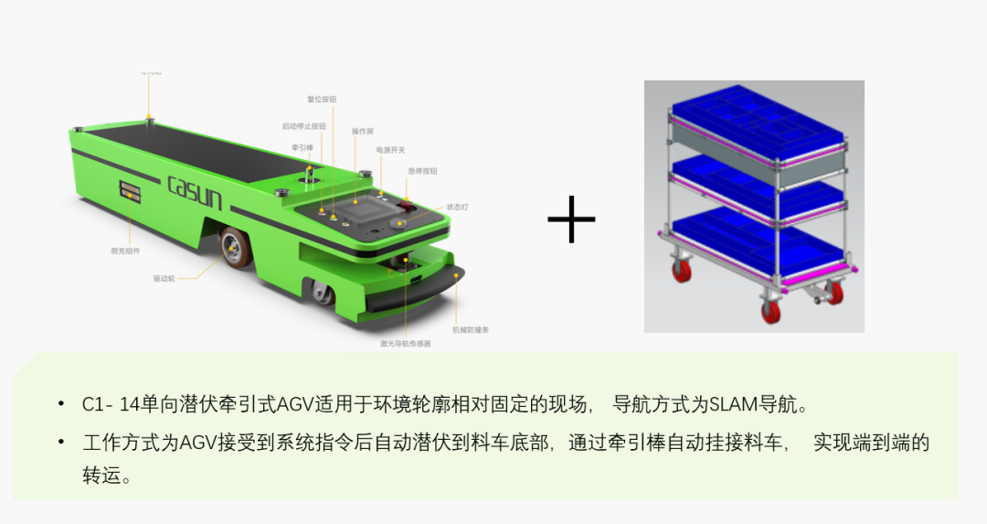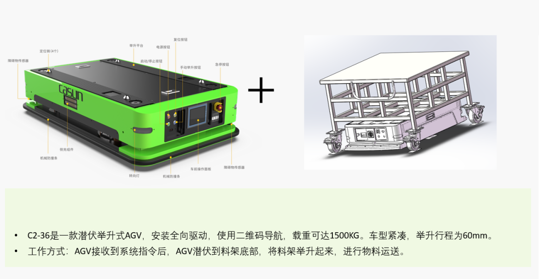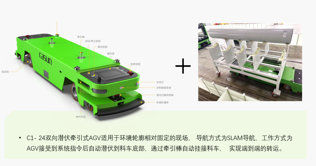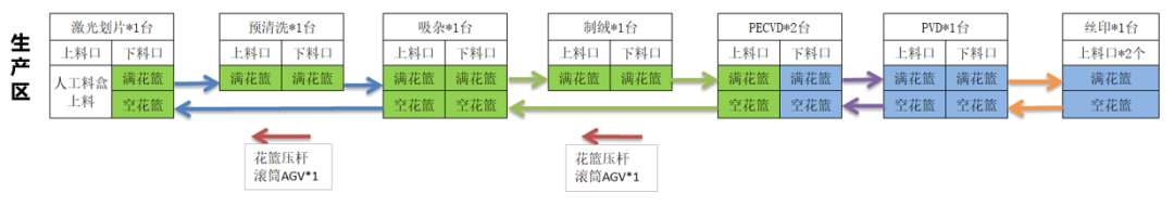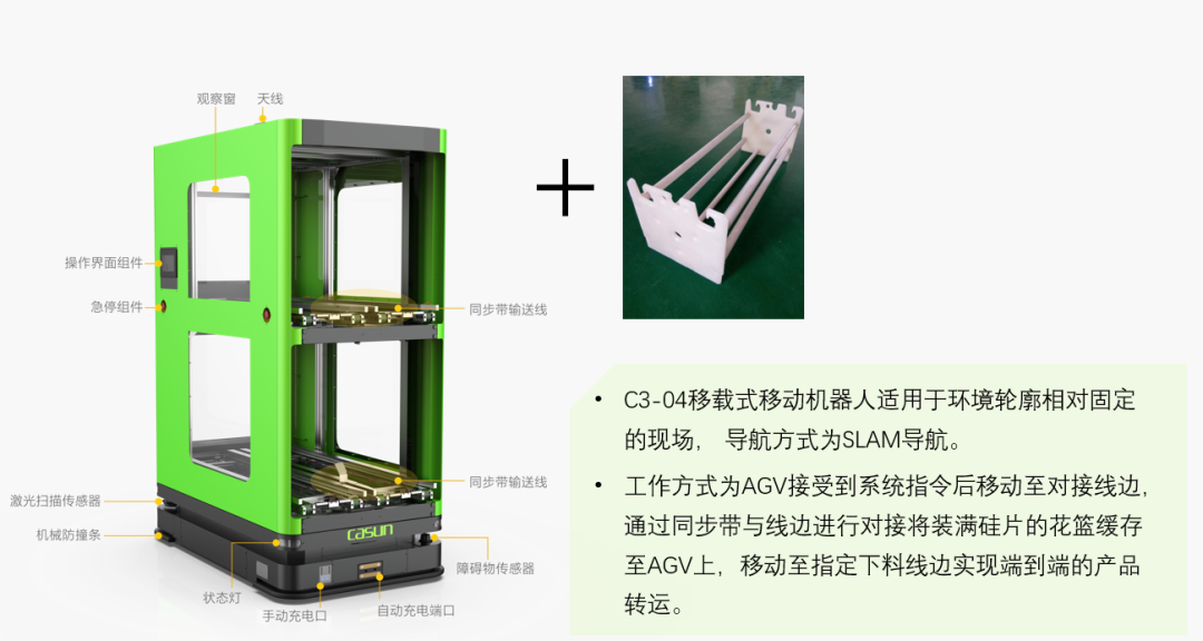佳順智能機器人主要解決了配件及組件的高頻次搬運作業(yè),優(yōu)化生產(chǎn)流程,減少能源和材料的浪費。此外,光伏制造是可再生能源領(lǐng)域,移動機器人的應用有助于減少化石燃料的使用,從而降低環(huán)境影響。從原料車間,通過機器手或人工裝箱后,通過移動機器人搬運料框到組件生產(chǎn)車間。