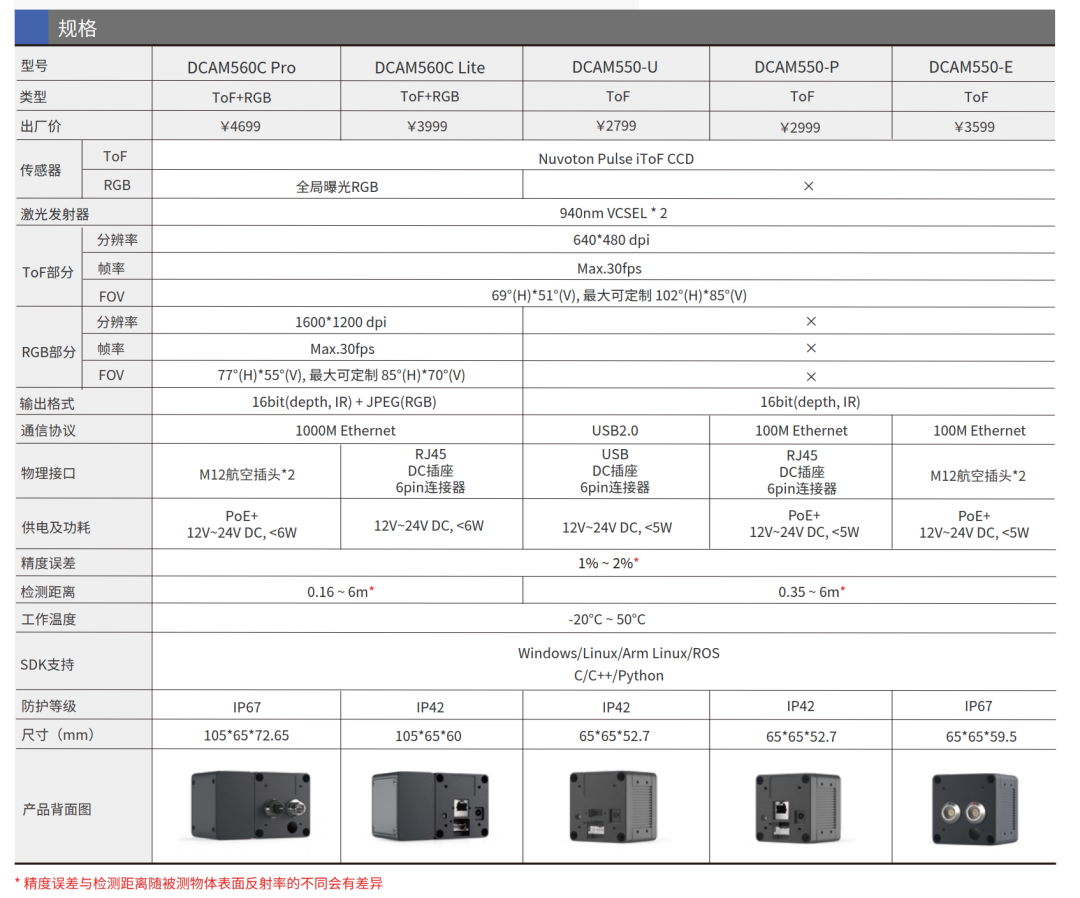 | 定制化產(chǎn)品 | ToF硬件&系統(tǒng) | 軟件SDK+算法 |