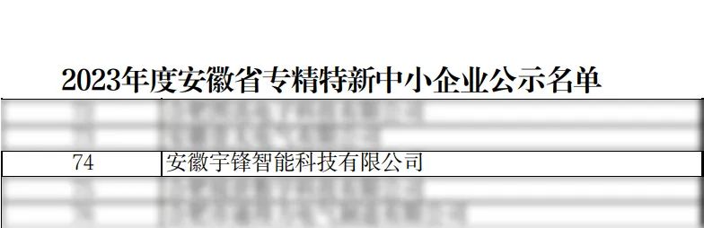 近日,安徽省經(jīng)濟和信息化廳公布了2023年“專精特新”中小企業(yè)名單,宇鋒智能榜上有名,這一殊榮充分肯定了宇鋒智能在技術創(chuàng)新、產(chǎn)品品質和綜合實力等方面的突出表現(xiàn)。