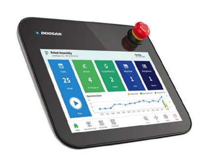 圖 2. 正在對協(xié)作機器人進行教學(xué)。(圖片來源:斗山機器人)
