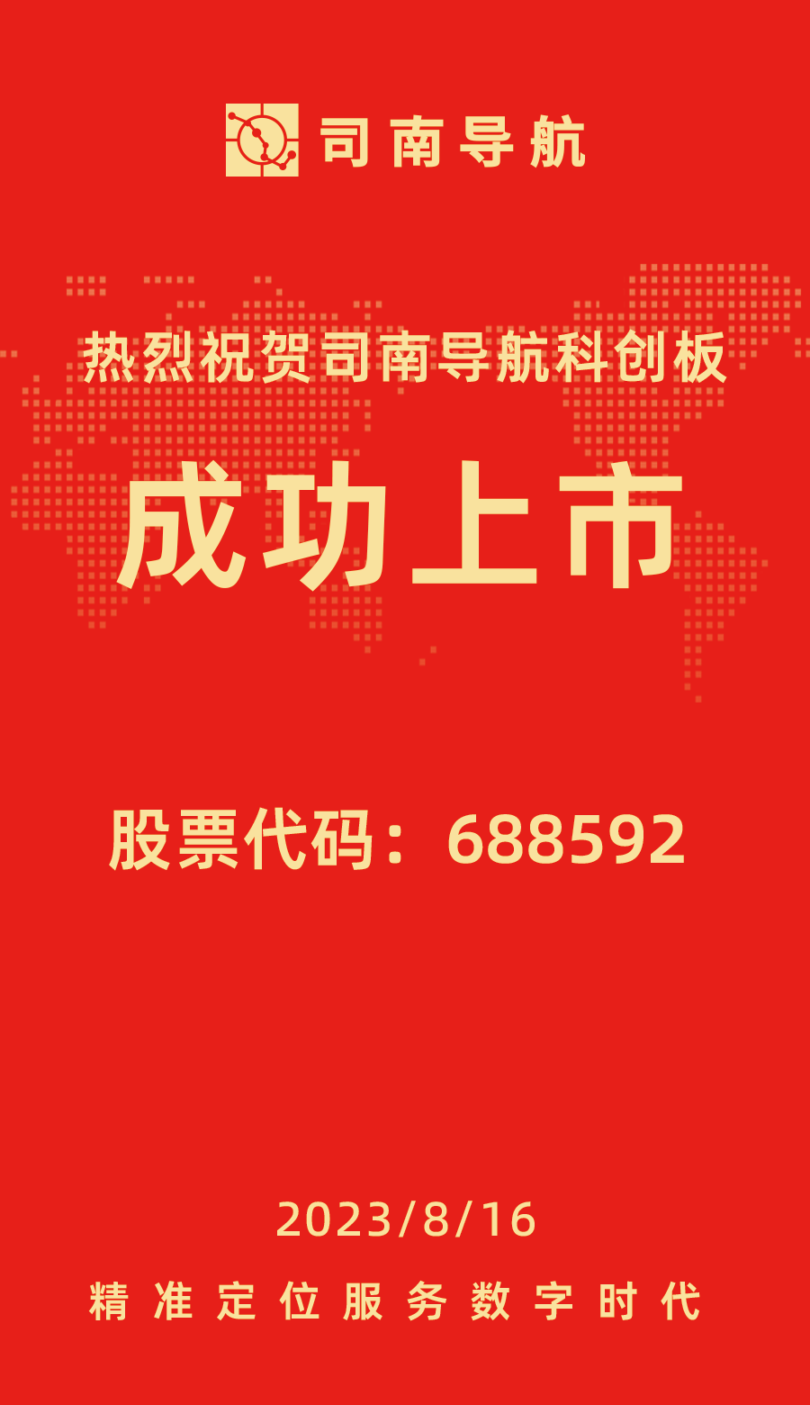 2023年8月16日,上海司南衛(wèi)星導航技術股份有限公司(以下簡稱“司南導航”)在上海證券交易所科創(chuàng)板正式掛牌上市(證券簡稱:司南導航,證券代碼:688592)。
