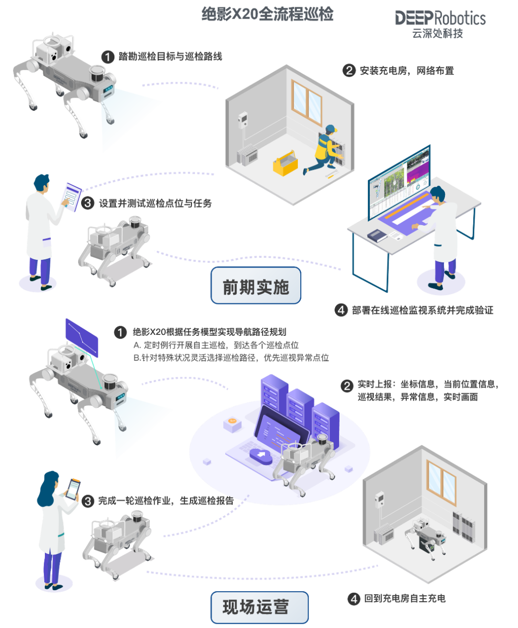 云深處已在國內(nèi)率先實現(xiàn)四足機器人全流程巡檢