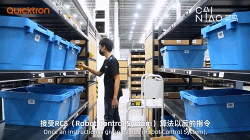 收到基于人工智能算法的RCS指令,移動(dòng)機(jī)器人就會(huì)把指定的貨架搬運(yùn)到揀貨人員面前,減少了人員的走動(dòng)。各環(huán)節(jié)的人員包括入庫(kù)、揀貨和包裝,只需要待在固定的工位上就可以等待貨物進(jìn)行傳遞,簡(jiǎn)單快捷