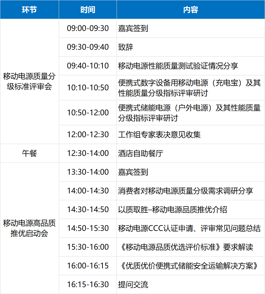 環(huán)節(jié)1:移動(dòng)電源質(zhì)量分級(jí)標(biāo)準(zhǔn)評(píng)審會(huì)(上午)