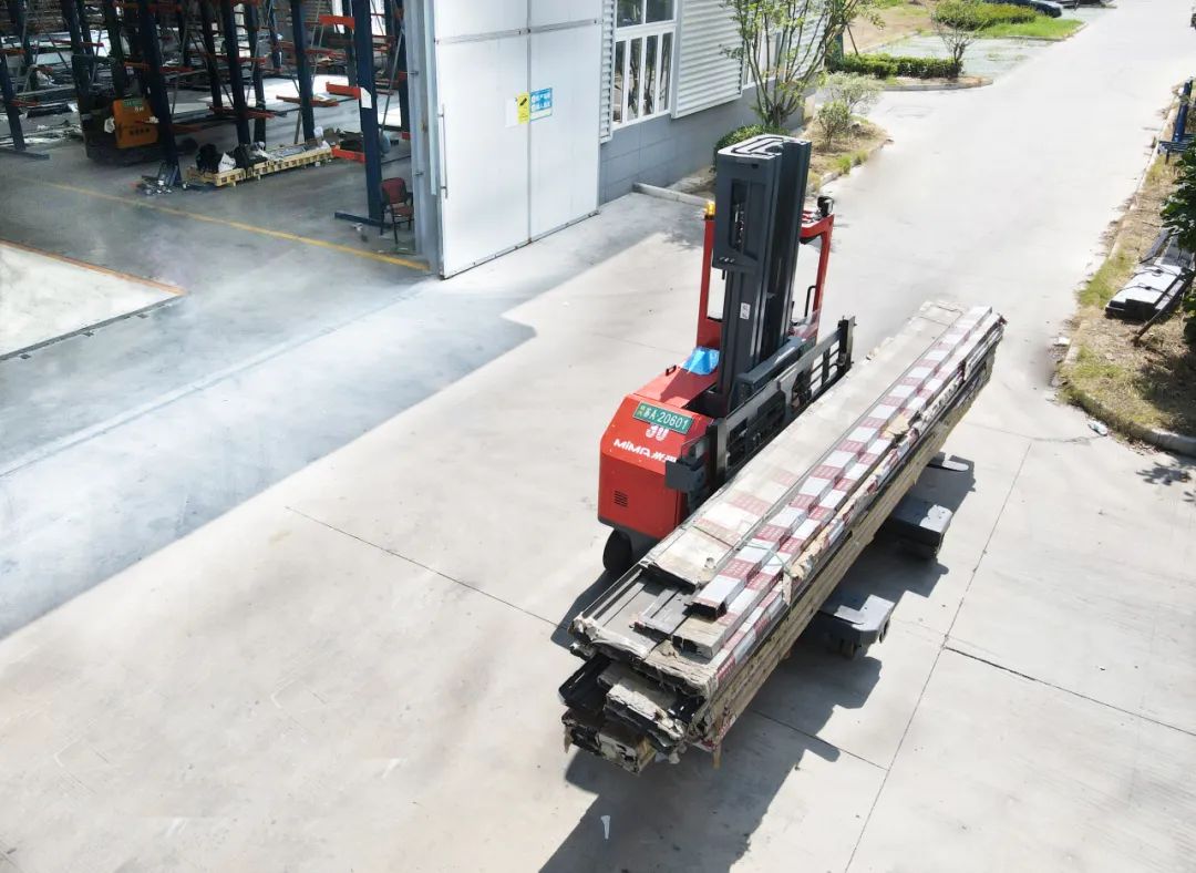 近期,江蘇某家裝建材企業(yè)因長物料搬運及貨物倉儲問題與MiMA對接,在MiMA米瑪提供完整的倉庫規(guī)劃設(shè)計方案后,根據(jù)貨物噸位、實際工況定制了MQB30四向前移式叉車。MQB30四向叉車可直行、側(cè)行進行超長貨物的搬運、堆垛,更加高效靈活。側(cè)行時擁有較小通道,為該企業(yè)增加寶貴的倉儲空間,提高廠區(qū)作業(yè)效率。