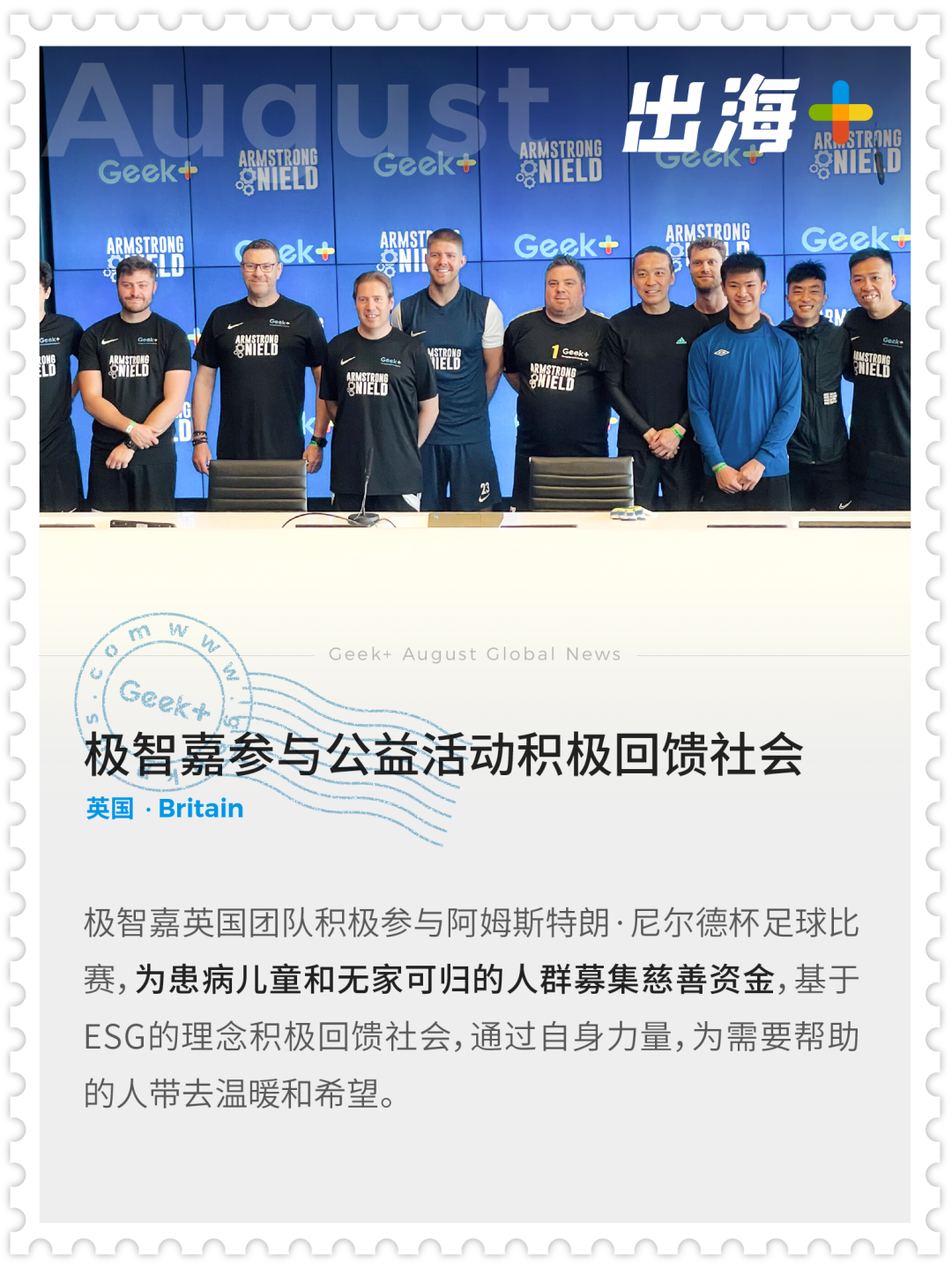 在深耕全球市場的同時,極智嘉還積極踐行社會責任。通過參與英國慈善足球賽,為患病兒童和無家可歸的人群募集慈善資金,貢獻自身力量。