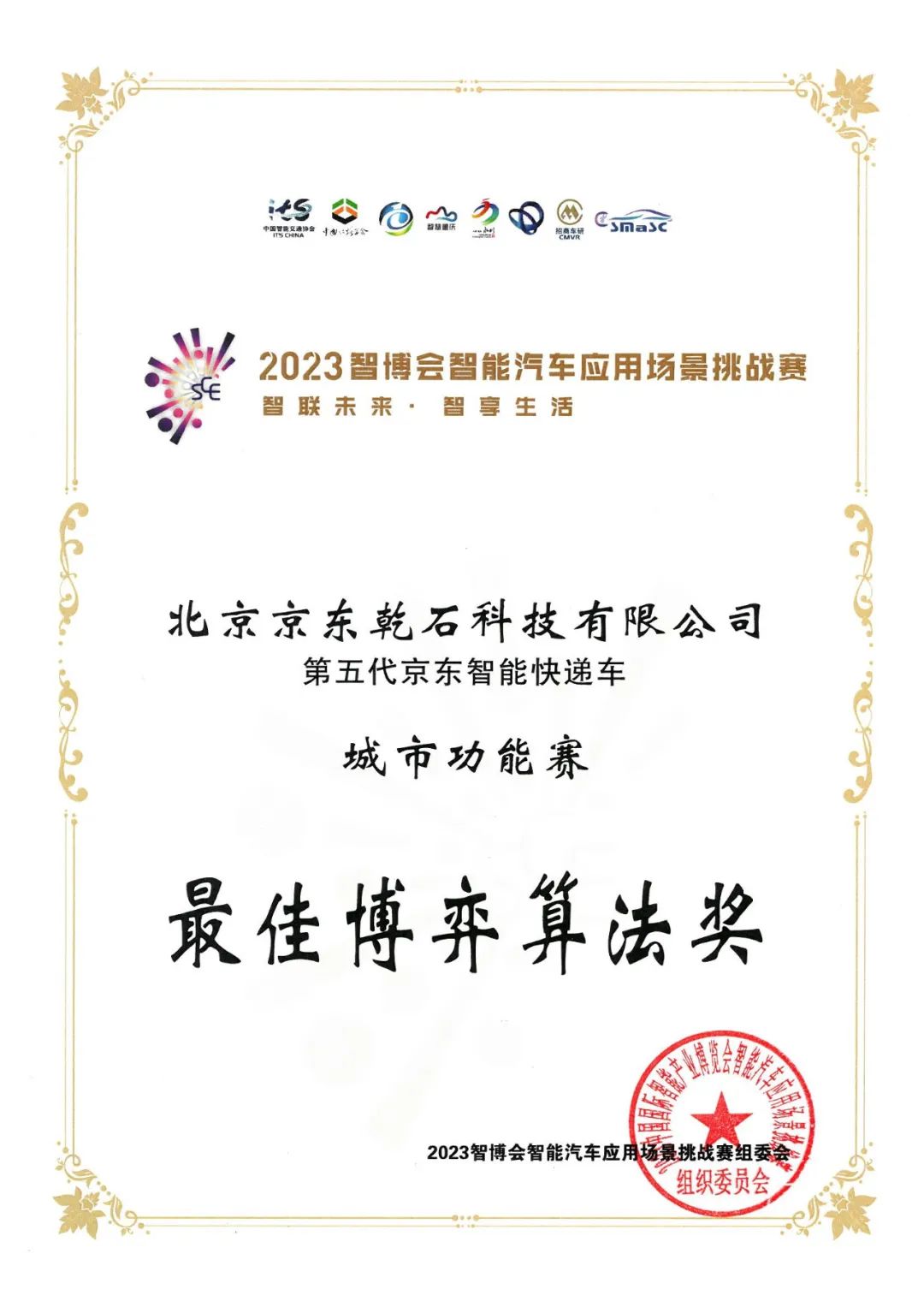 近日,2023中國國際智能產(chǎn)業(yè)博覽會首屆智能汽車應用場景挑戰(zhàn)賽在重慶市永川區(qū)舉行,來自智能汽車領(lǐng)域的180余名行業(yè)代表、19支參賽隊伍齊聚永川,在城市道路不封路工況下進行比賽。本次挑戰(zhàn)賽以“智聯(lián)未來·智享生活”為主題,包括城市功能賽和高速通行賽兩個分賽場,京東物流智能快遞車在城市功能賽中表現(xiàn)亮眼,獲得“最佳博弈算法獎”。