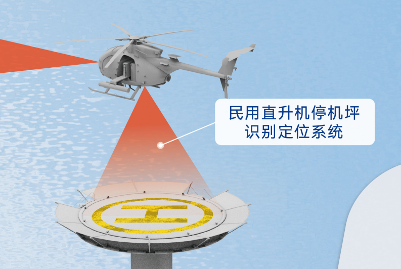 基于激光雷達(dá)的精準(zhǔn)感知性能,可準(zhǔn)確識別停機(jī)坪的“H”標(biāo)識,引導(dǎo)飛行載體精準(zhǔn)停降,同時可實時檢測飛行載體距離停機(jī)坪的具體高度,幫助飛行員更安全、進(jìn)準(zhǔn)、高效地進(jìn)行著陸操作。