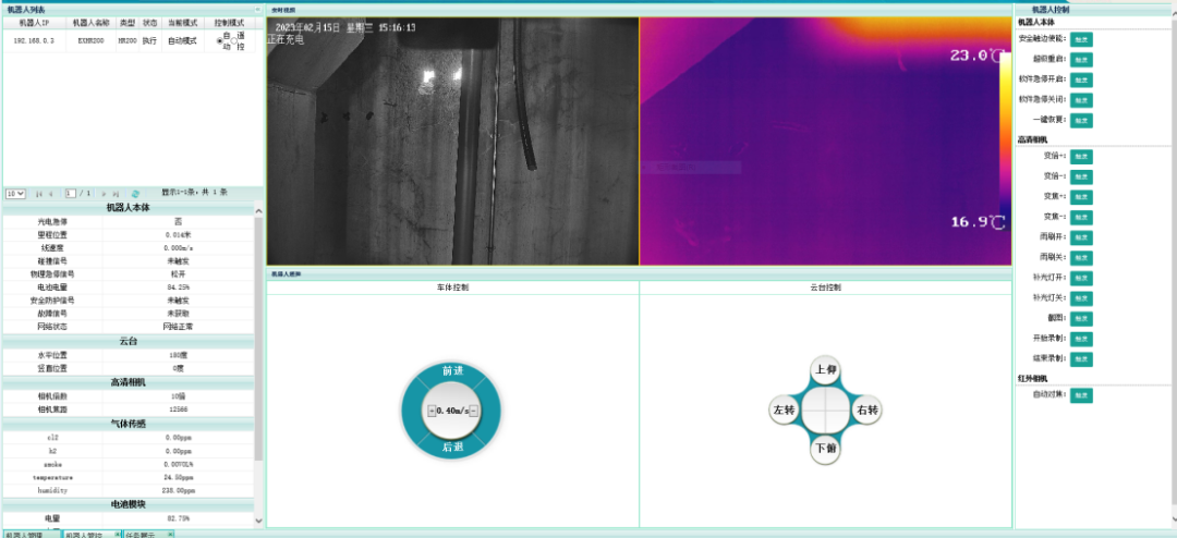 國自僅用一臺(tái)智能巡檢機(jī)器人完成兩個(gè)樓層的巡檢任務(wù),巡檢點(diǎn)位超200個(gè),巡檢頻次1小時(shí)/次,重點(diǎn)檢測一樓閥門泄露區(qū)域,然后跨樓層爬坡至二樓檢測表計(jì)、閥門、紅外溫度及氣體的泄漏情況。通過部署在運(yùn)維中心的管理平臺(tái),管理人員可實(shí)時(shí)管理及控制機(jī)器人進(jìn)行巡檢任務(wù)作業(yè),同時(shí)將巡檢狀態(tài)和結(jié)果實(shí)時(shí)傳輸?shù)胶笈_(tái)進(jìn)行分析及存儲(chǔ)。