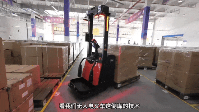 “3、2、1,出發(fā)!”雙方快速向著前方駛?cè)ィ蝗?,由記者駕駛的電叉車(chē)疑似操作失誤,臨時(shí)拐彎,偏離了作業(yè)路線。反觀中力智能搬運(yùn)機(jī)器人則穩(wěn)穩(wěn)地沿著既定路線行駛,快速抵達(dá)終點(diǎn),并在卸貨處表現(xiàn)出極高的自動(dòng)倒庫(kù)技術(shù),圓滿完成搬運(yùn)任務(wù)!