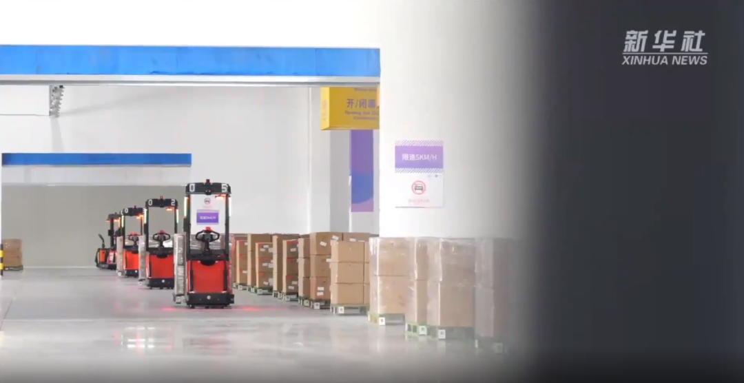 視頻采訪中,新華社記者經(jīng)過(guò)簡(jiǎn)單培訓(xùn)后直接駕駛一輛電叉車(chē)與滿載貨物的中力無(wú)人電叉展開(kāi)競(jìng)速PK。