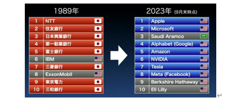 2023 年市值排名中沒有日本企業(yè)。孫正義表示,日本企業(yè)對(duì)互聯(lián)網(wǎng)反應(yīng)不佳。