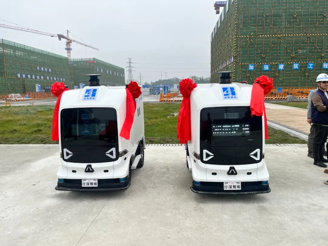其中,行深智能助力湖南建工集團(tuán)升級(jí)智能建造,當(dāng)下,一輛輛無人車正在麓山實(shí)驗(yàn)室項(xiàng)目工地上承擔(dān)工地送物、送樣以及其他危難險(xiǎn)重的任務(wù)。