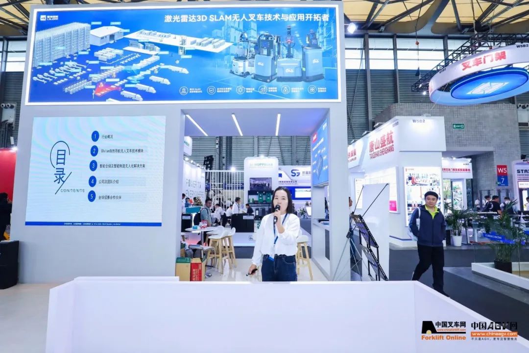 在展會(huì)現(xiàn)場(chǎng),鐳神智能系統(tǒng)事業(yè)部副總經(jīng)理王婉婉女士對(duì)代理政策和產(chǎn)品進(jìn)行深入解讀,她表示:鐳神智能激光雷達(dá)3D SLAM無(wú)人叉車填補(bǔ)了高端市場(chǎng)空白,解決目前市場(chǎng)上傳統(tǒng)低端無(wú)人叉車面臨的痛點(diǎn),基于公司整體發(fā)展戰(zhàn)略,充分發(fā)揮自身產(chǎn)品技術(shù)和資源優(yōu)勢(shì),引領(lǐng)無(wú)人叉車行業(yè)快速發(fā)展的美好愿景,并在現(xiàn)場(chǎng)招募全球合作伙伴,打造全球事業(yè)共同體、利益共同體,吸引了眾多參展觀眾的咨詢,期待開(kāi)啟合作新篇章。