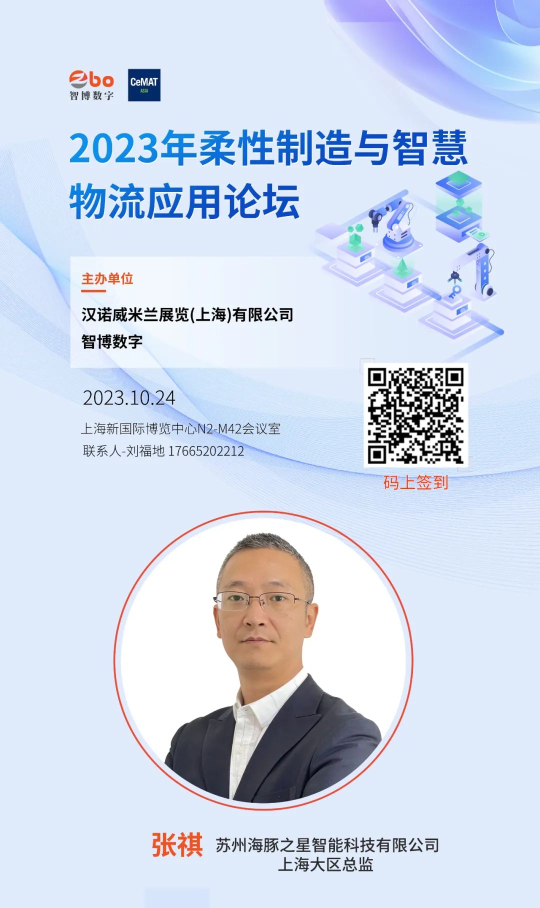 由智博數(shù)字聯(lián)合漢諾威米蘭舉辦的“2023年柔性制造與智慧物流應(yīng)用論壇”也同期舉行。海豚之星機(jī)器人上海大區(qū)總監(jiān)張祺應(yīng)邀參加了本次論壇大會并發(fā)表《移動機(jī)器人在智慧物流中的場景應(yīng)用》主題演講。