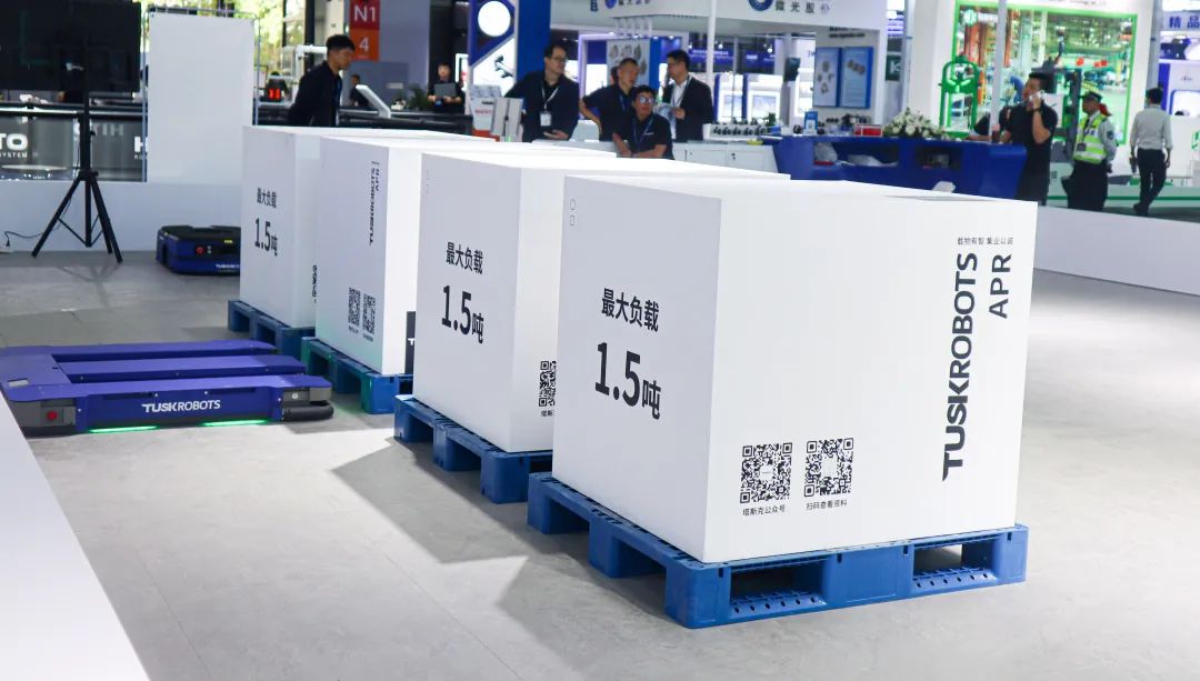 全球首發(fā)1.5T大負(fù)載APR托盤(pán)機(jī)器人在塔斯克機(jī)器人展臺(tái)重磅亮相。塔斯克1.5T大負(fù)載APR,突破1.5T載重極限,可實(shí)現(xiàn)360°激光避障,擁有極高的安全性。