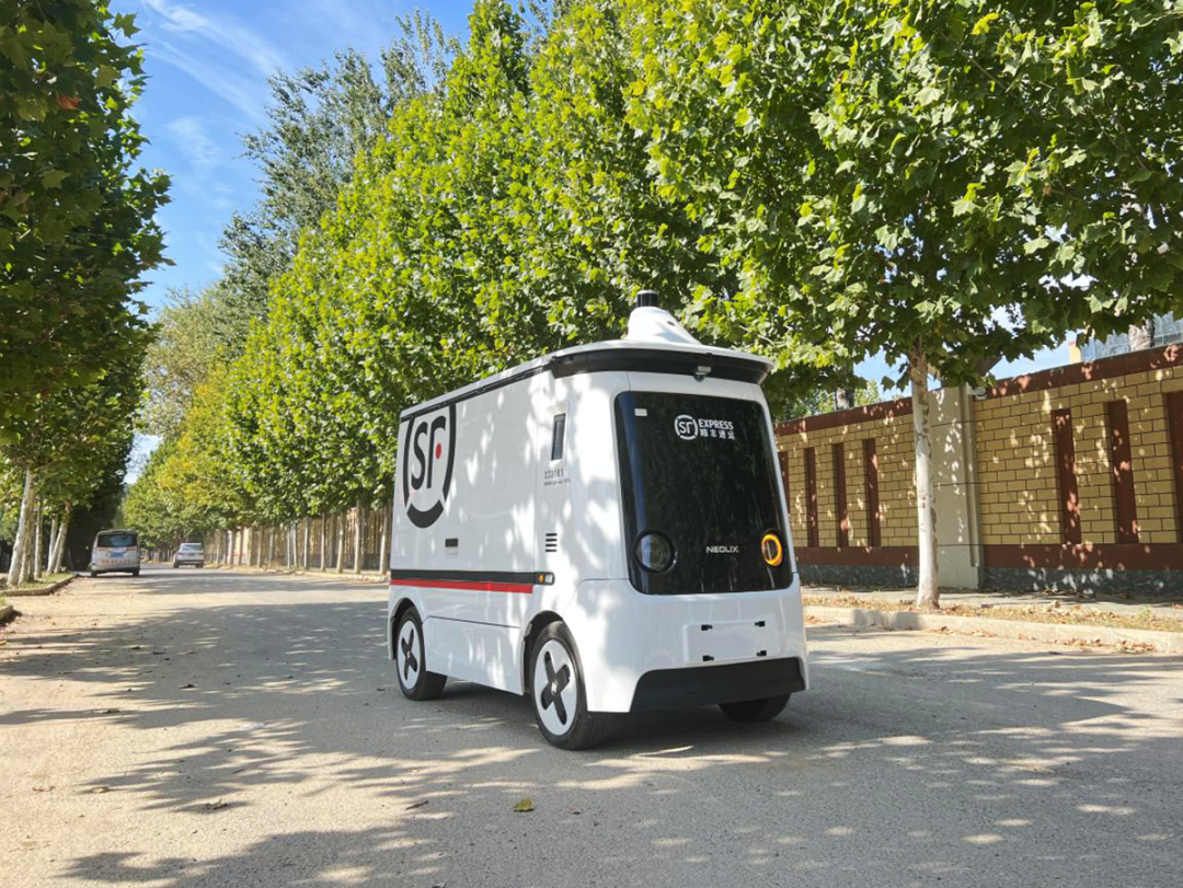 新石器無(wú)人配送車前往快遞接駁點(diǎn)。