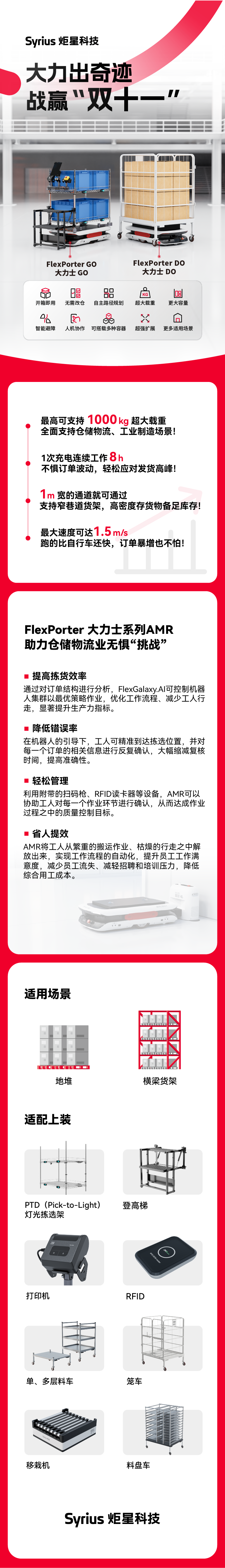 Syrius炬星是專注自主移動機器人(AMR)研發(fā)與制造的國家高新技術企業(yè),致力于打造基于AMR人機協(xié)作的智能物流解決方案。我們的骨干團隊深耕機器人產(chǎn)業(yè),成員曾在谷歌、英偉達、阿里巴巴、亞馬遜、華為、大疆創(chuàng)新等企業(yè)任核心高管。