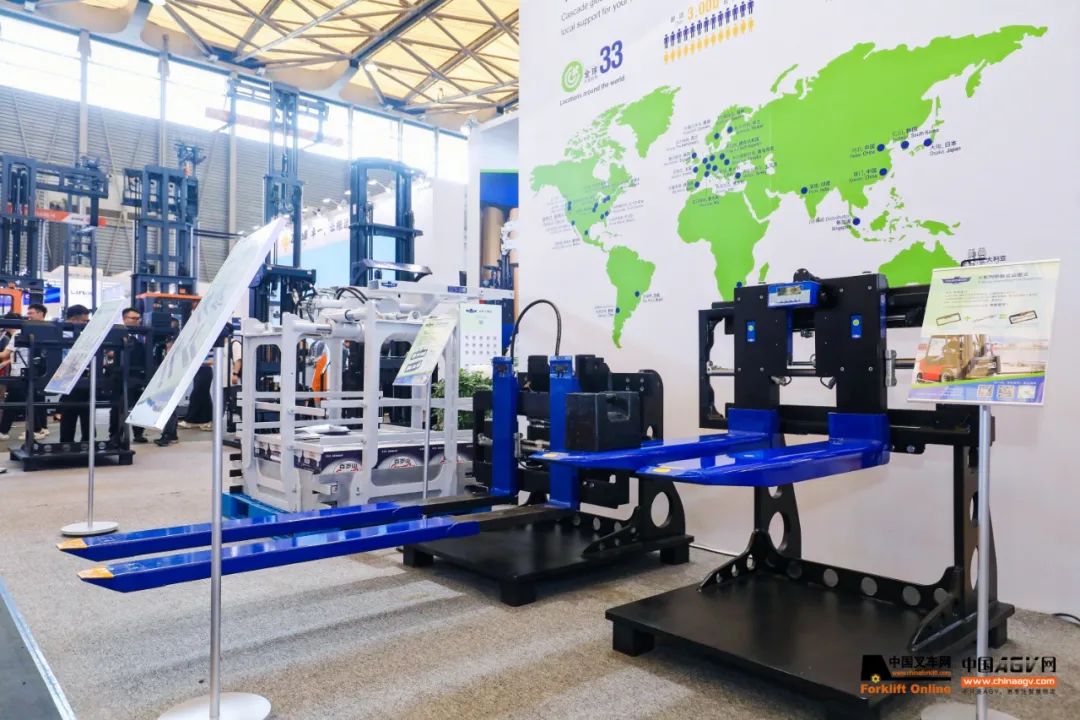 中叉網(wǎng)記者在卡斯卡特展位現(xiàn)場了解到,2022年卡斯卡特完成了對門架制造商Lift-Tek的收購,為那些需要為其叉車或自動導(dǎo)引車(AGV)前端定制解決方案的客戶提供集合卡斯卡特屬具的Lift-Tek門架?!拔覀兡軌驗樾枰獙I(yè)、集成式門架/屬具解決方案的客戶提供功能配置更加強大的選項”,卡斯卡特人員結(jié)合現(xiàn)場展示的一臺四級門架和一臺掛裝伸縮叉車的三級門架介紹道:“在四級或者五級門架,以及其他特殊門架領(lǐng)域,Lift-Tek以優(yōu)質(zhì)、可靠的產(chǎn)品,是毫無爭議的全球領(lǐng)先者。而與屬具的結(jié)合,能為有這方面需求的叉車或AGV車輛制造商提供更開拓的思路和保障,車輛制造商可以更專心于自己擅長的業(yè)務(wù)?!笨ㄋ箍ㄌ胤Q之為物料搬運車輛的“前端解決方案”,并展示了多種屬具與門架集合的案例。