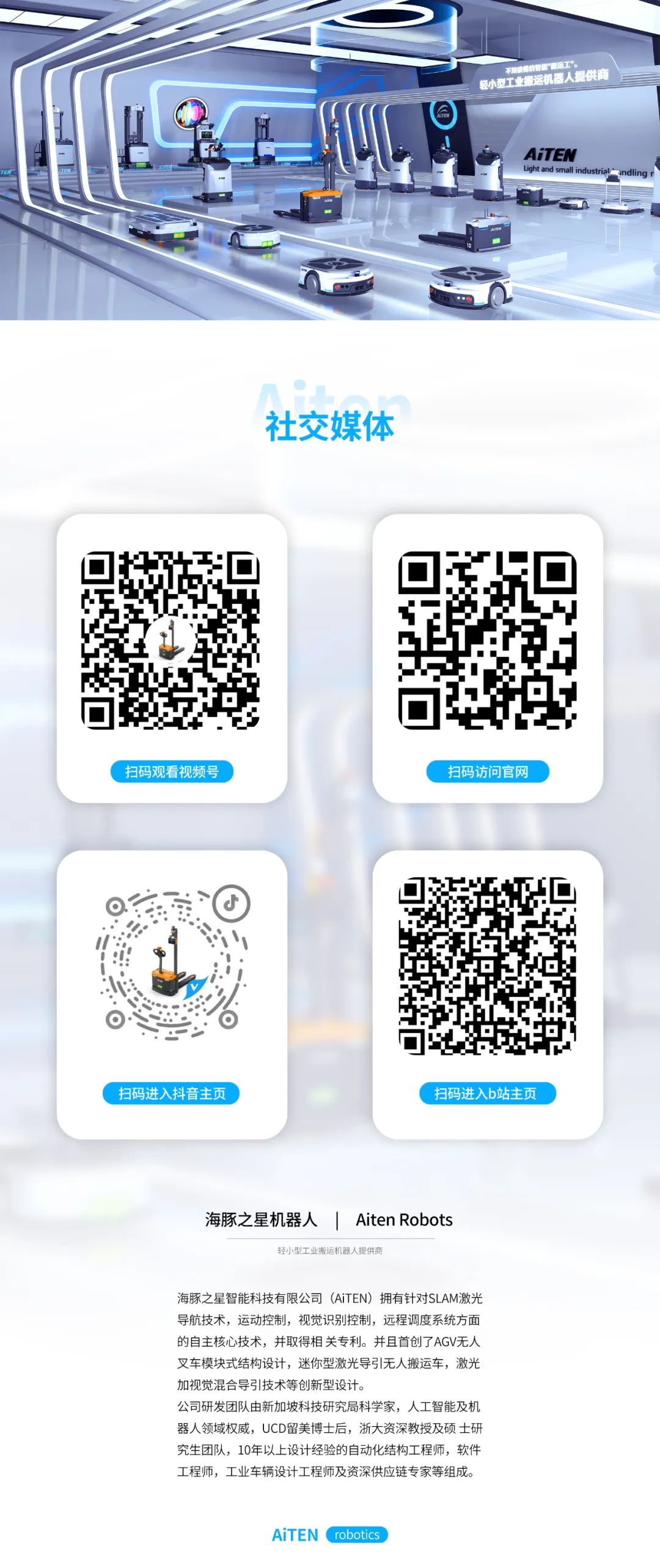 公司研發(fā)團隊由新加坡科技研究局科學家,人工智能及機器人領域權威,UCD留美博士后,浙大資深教授及碩士研究生團隊,10年以上設計經驗的自動化結構工程師,軟件工程師,工業(yè)車輛設計工程師及自身供應鏈專家等組成。